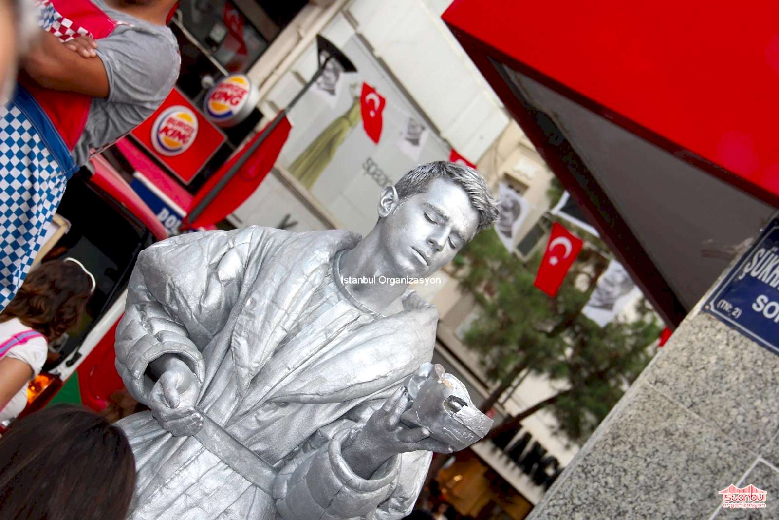 Canlı heykel gösterisi, Avrupa’da çok yaygın olan ve son yıllarda Türkiye’de de çok sık karşılaştığımız bir sanat gösterisidir. Tiyatral bir etkinlik sergileyen canlı heykel sanatçımız, hayali ya da gerçek kişileri durarak canlandırırlar. Tüm vücutları ve kostümleri boyanır. Özel etkinlik ve organizasyonlarda şehrin en işlek caddelerinde ve alışveriş merkezlerinde gösterilerini yaparlar. Tiyatro ve canlı heykel eğitimi almış profesyonel sanatçılarımızla, İstanbul ve yakın çevresi, Marmara Bölgesi ve hatta tüm Türkiye’ye canlı heykel hizmeti veriyoruz.