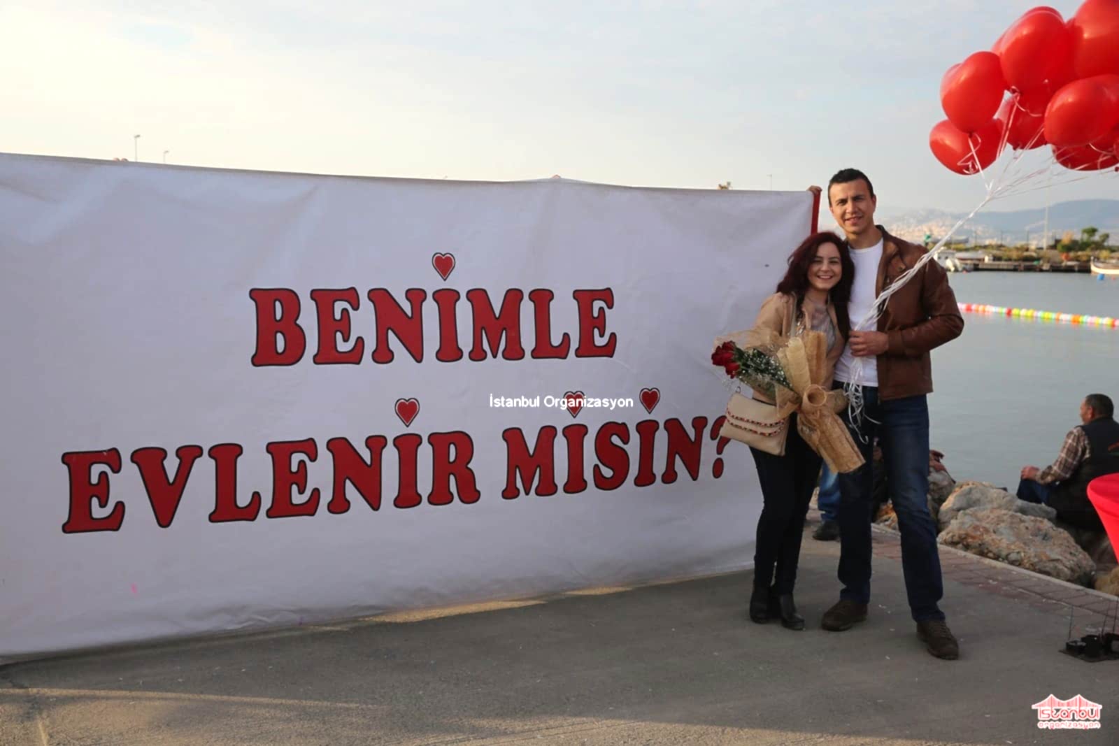 - “Benimle Evlenir Misin” Yazılı Pankart