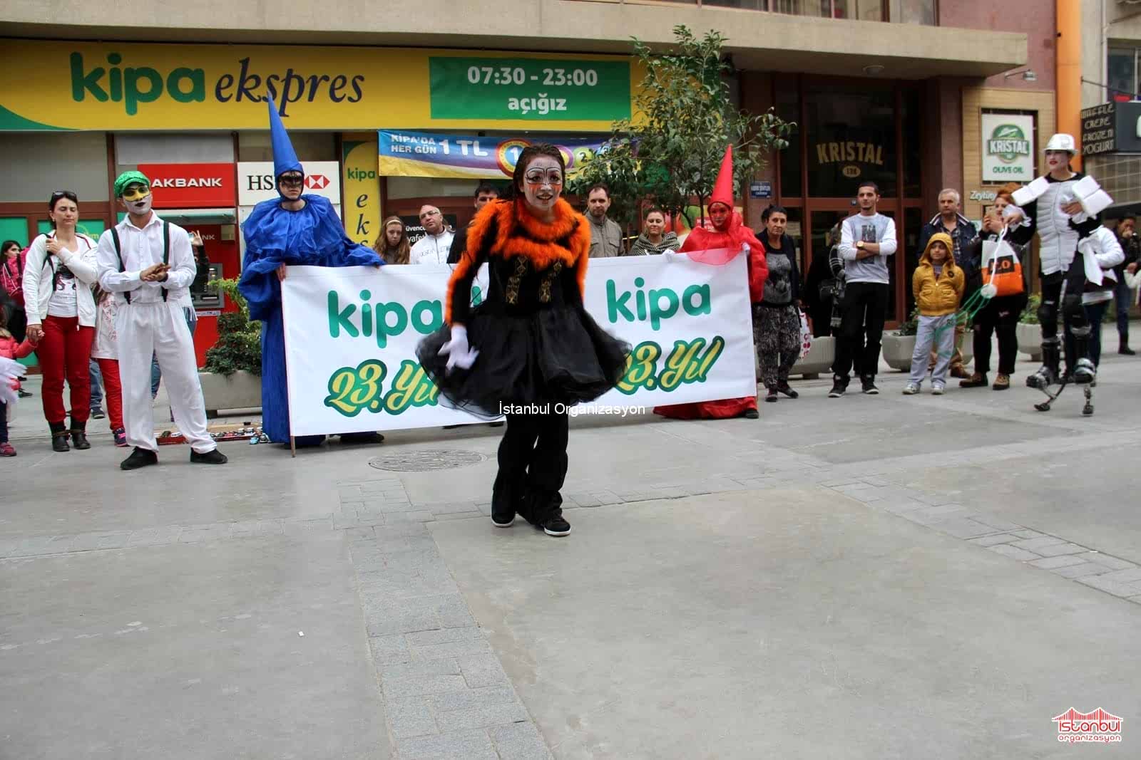 ‘Kipa Kortej Ekibi‘ – 8 haftalık aktivite şeklinde sürdürdüğümüz organizasyonlardan biridir. Kipa stratejik pazarlama departmanına, 23. yıl kutlamaları vesilesiyle sunduğumuz etkinlik programına bando ekibi, sokak dansçıları, canlı heykel dikkat çeken kostümleriyle maskot animatörler, tahta bacak, skyrunner, palyaçolar, jonglör gibi birçok animasyon gösterisi ekledik. Ses sistemleri, mikrofon, piroteknik malzeme gibi teknik hizmetlerimiz de bu etkinlik programında yerini aldı. Profesyonel dans ekibimiz ve animatörlerimiz, şehrin en ilgi çeken ve kalabalık caddelerinden biri olan Kıbrıs Şehitleri Caddesi’nde görkemli bir şov sergilediler. İzmir Büyükşehir Belediyesi, Konak Belediyesi ve kaymakamlıklardan gerekli yasal izinler alarak gerçekleştirdiğimiz Kipa 23. yıl etkinlikleri, ‘Kipa Kortej ekibi’ projemizle birlikte güzel İzmir’in güzel sokaklarına ve caddelerine renk getirdi.