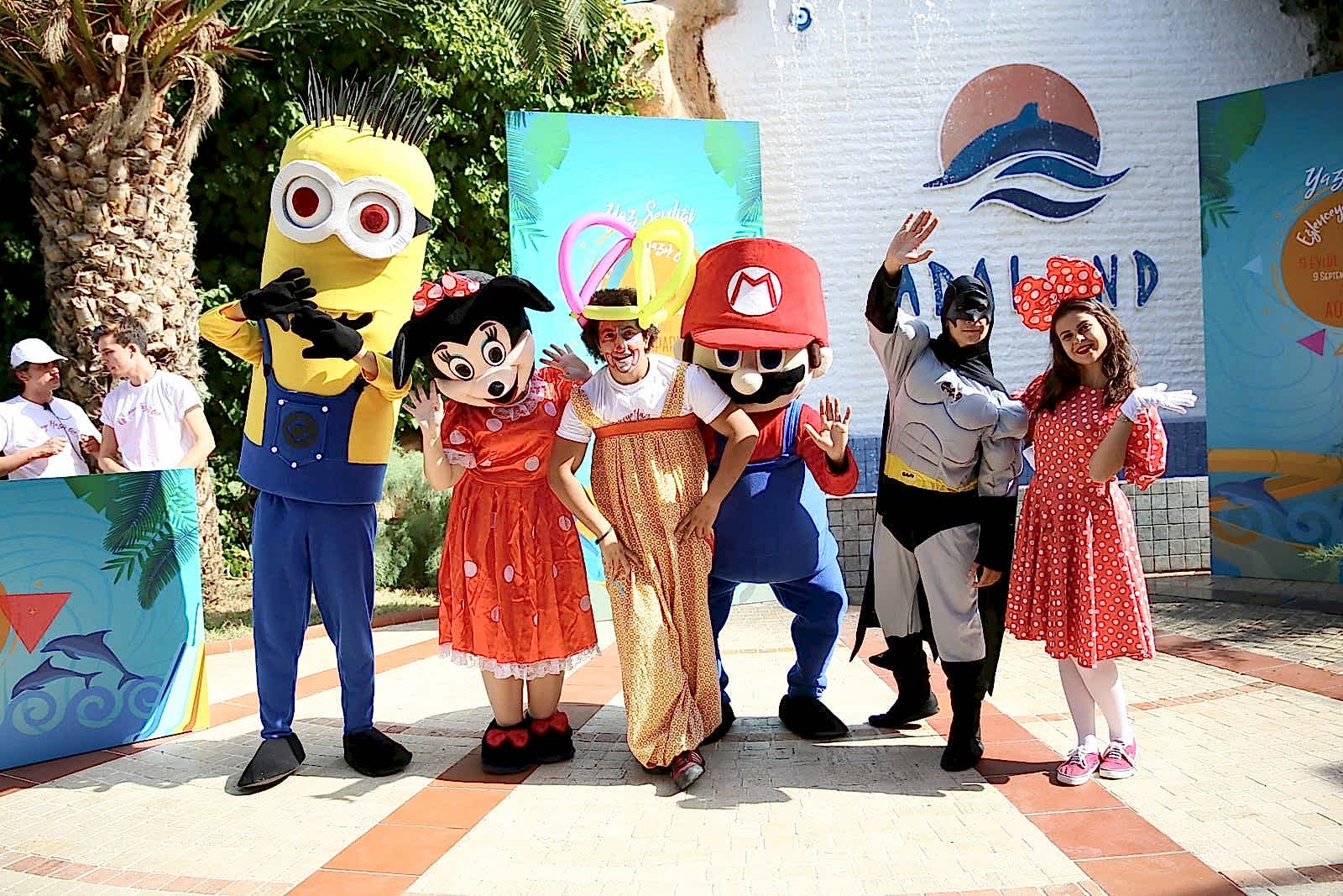 Kostümlü karakterler, profesyonel animasyon ekibi tarafından canlandırılır.