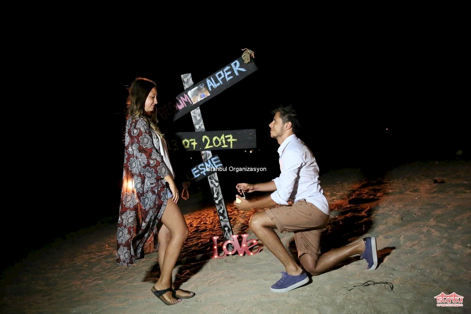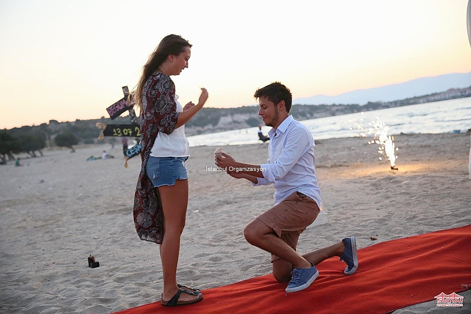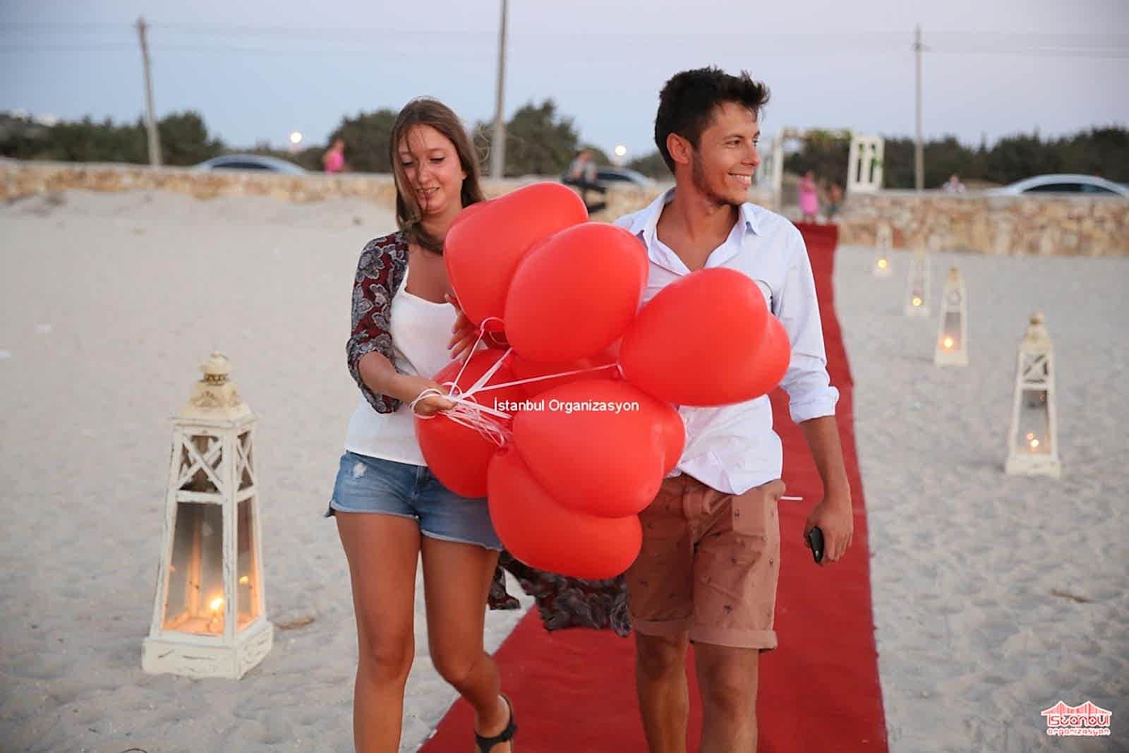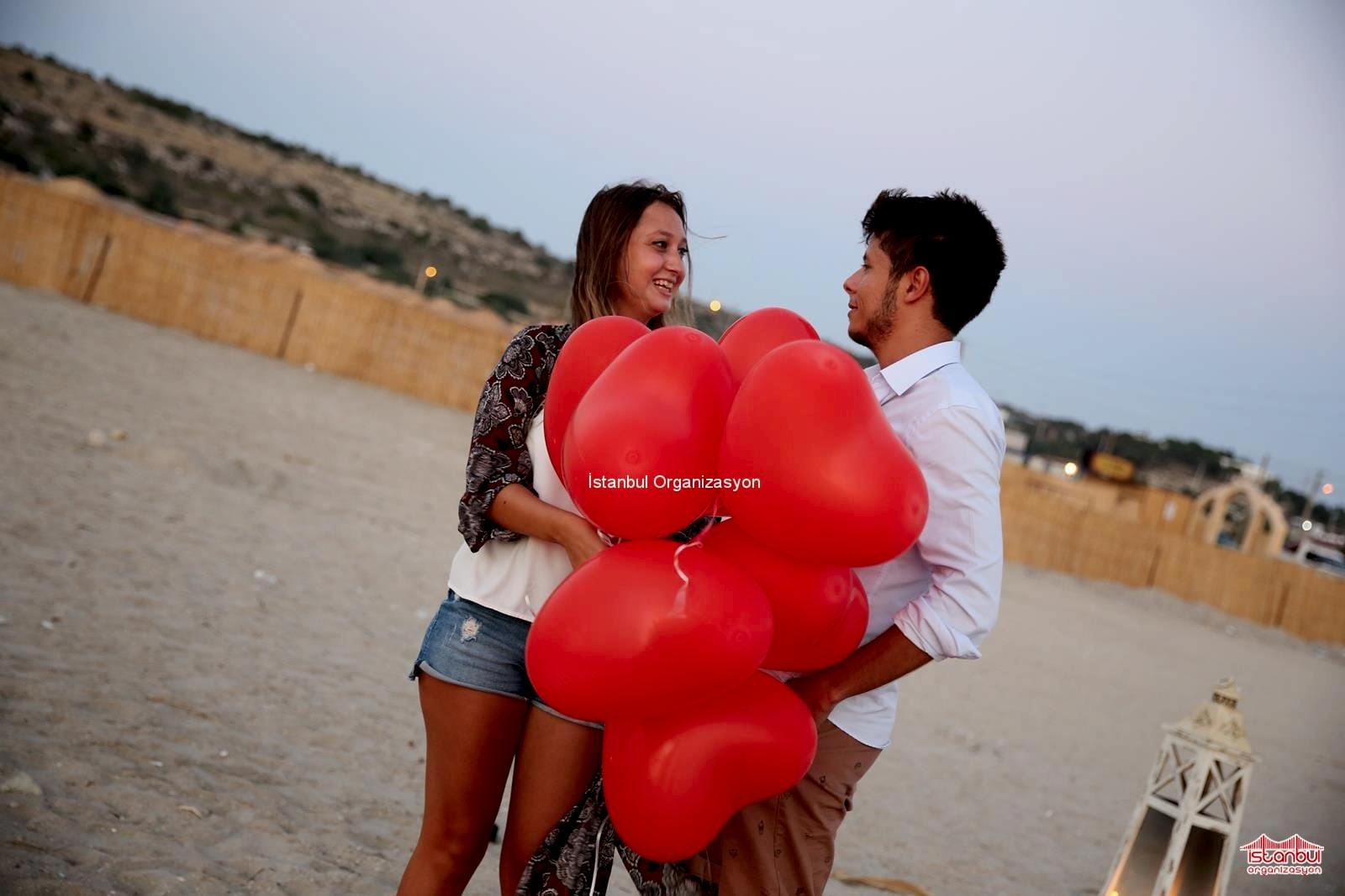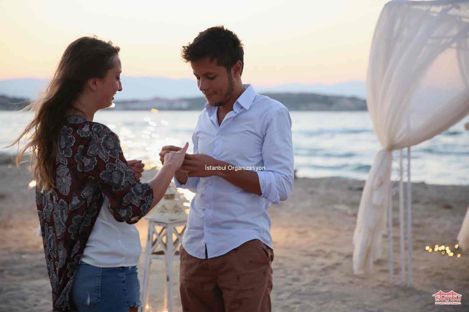 Kumsalda evlilik teklifi organizasyonu ile İstanbul Organizasyon firmamız sıra dışı ve unutulmayacak organizasyonlara imza atıyor. Evlilik yolunda ilk adımı atmaksa çoğu zaman erkeklere düşer. Sevdiğiniz kadının nelerden hoşlandığını ve nasıl bir evlilik teklifi hayali kurduğunu biliyorsanız sizlere bu doğrultuda hizmet sunuyoruz. Nasıl bir organizasyon yapacağınız konusunda karar veremiyorsanız çoğu kadınlardan oluşan ekibimizle sizlere birbirinden farklı seçenekler sunuyoruz. Alper Bey de seviyeli ilişkilerini bir sonraki adıma taşımak üzere evlilik teklifi etmeye karar vererek İstanbul Organizasyon firmamıza ulaşmış. İnternet sitemiz ve Youtube kanalımız üzerinden İstanbul Organizasyon firmamızı inceleyen Alper Bey ile detaylı olarak görüşmelerimize devam ettik. Begüm Hanıma nasıl bir evlilik teklifi gerçekleştireceği konusunda kararsız kalan Alper Beye kumsalda evlilik teklifi organizasyonu, teknede evlilik teklifi organizasyonu, dev pankartla evlilik teklifi organizasyonu gibi birbirinden farklı evlilik teklifi organizasyonu paketlerimizden bahsettik.